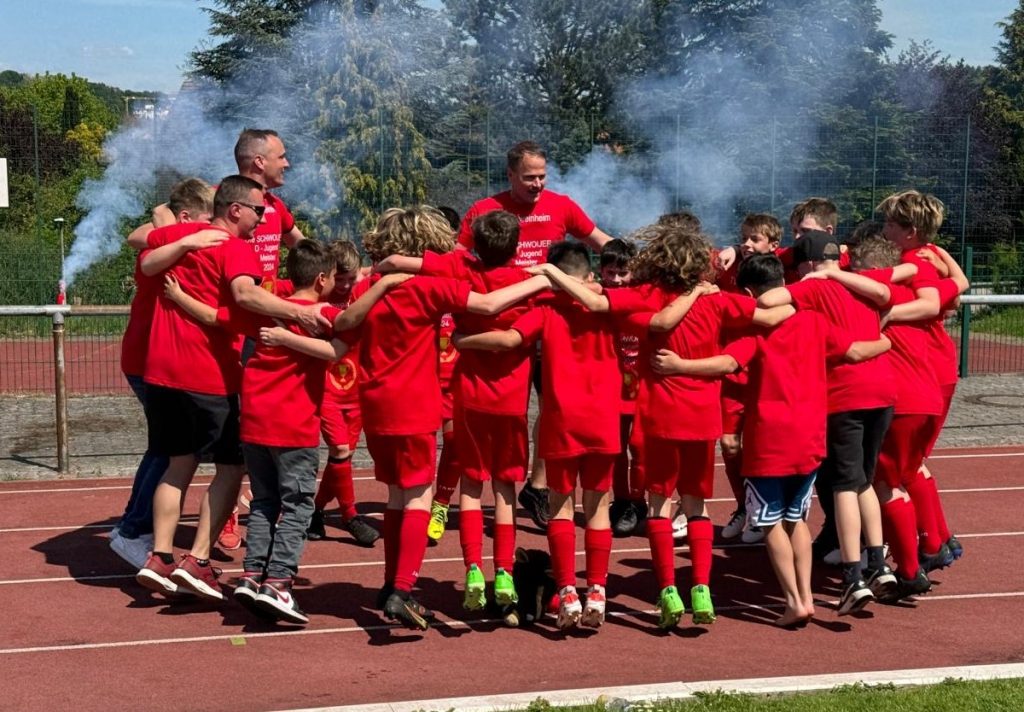 Am Samstag war im letzten Saisonspiel der TSV Mainaschaff zu Gast. Wir hatten uns in der bisher ungeschlagenen Saison den Grundstein zur Meisterschaft zurechtgelegt. Mit Anpfiff übernahmen wir klar, dass Spielgeschehen und hatten der Partie im Griff, scheiterten aber immer wieder am starken Gästekeeper. Das Spiel der Oscheffer war mit ihrer pfeilschnellen Nummer „7“ klar auf Konter ausgelegt, die wir aber mit unserer Abwehrreihe gut entschärfen konnten. Kurz vor dem Halbzeitpfiff fackelte Louis nach einem Ballgewinn nicht lange und zirkelte die Kugel zum 1:0 ins Dreieck. Im zweiten Abschnitt, in der 43. Minute nutzte Nils nach einer Ecke einen gescheiterten Klärungsversuch zum zweiten Treffer. Danach plätscherte die Partie etwas vor sich hin und man schien sich mit dem Ergebnis zu begnügen. Doch kurz vor dem Ende ertönte aus heiterem Himmel ein Pfiff und der Schiri entschied auf Elfmeter für den Gast. Den zumindest sehr fragwürdigen Strafstoß verwandelte deren
