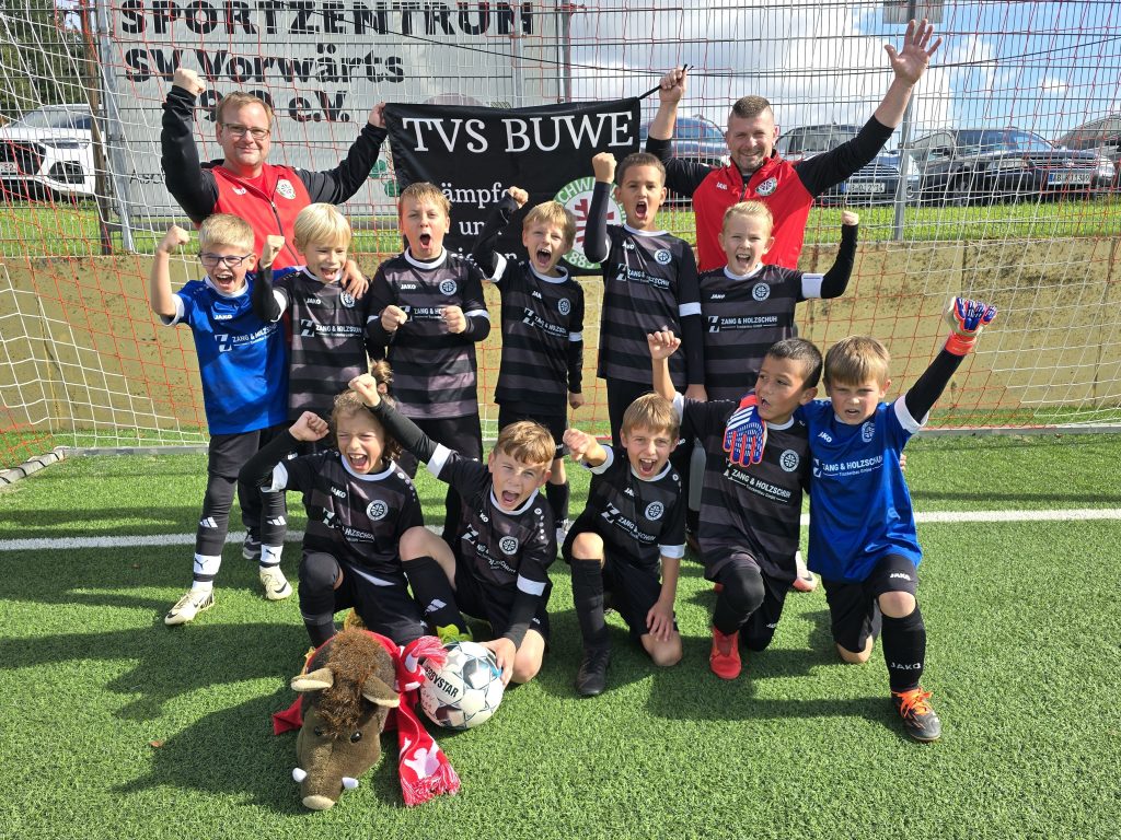 für den TVS erzielte. Im letzten Viertel merkte man aber unseren Jungs die Belastung an. Mit großem Kampfeinsatz unseres Mittelfeldes um Ismail, Joris, Thiago und Mischa hielt man lange die Führung am Leben. Der Gegner aber konnte mit einem sehr großen Kader von 21 Kindern immer wieder frische Jungs auf den Platz schicken. Drei Minuten vor Ende des letzten Viertels glichen die Gastgeber aber leider aus. Unbeeindruckt davon spielte man aber weiter auf den Sieg und erspielte sich noch zwei Großchancen, die aber vom starken Gegnerischen Keeper abgewehrt werden konnten. Am Ende trennte man sich mit einem starken 2:2 Unentschieden und festigte dadurch den 4. Tabellenplatz in der Liga. Klasse Leistung, Jungs. Für den TVS spielten: Toni Heßler, Liam Keller, Ayden Jordan, Mirco Herrmann, Mischa Opara, Ismail Der, Joris Brandenbusch, Elias Brühler, Thiago Arias