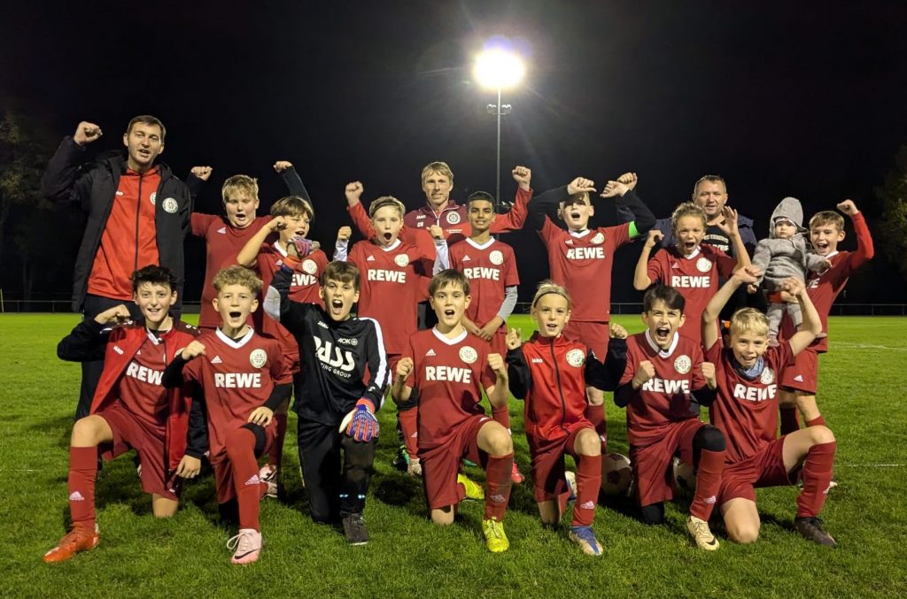 den freigelaufenen Emil in der Mitte, der den Ball durch Direktabnahme im Netz der Goldbacher zappeln ließ. Dieses Tor wurde wie ein Turniersieg gefeiert und so fühlte sich der Abpfiff des Spiels direkt nach dem Tor auch wie ein Sieg an. Unsere Jungs fielen nach dem Abpfiff komplett erschöpft, aber auch stolz auf ihre Leistung auf den Boden. Wir als Trainer sind mächtig stolz über die Entwicklung der Jungs, die gerade nachdem Goldbach in