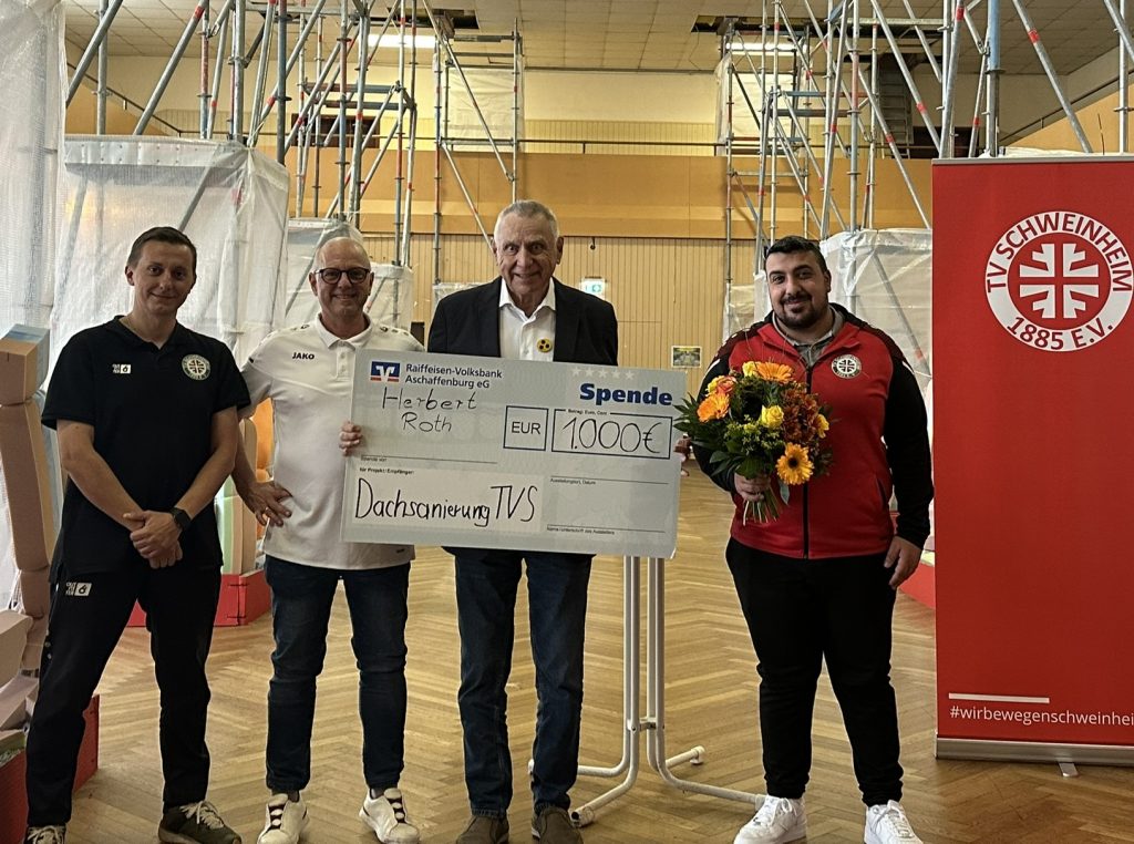 Der TV Schweinheim freut sich über eine weitere großzügige Spende: Herbert Roth, langjähriges Mitglied und ehemaliger Geschäftsführer des Vereins, unterstützt die dringend notwendige Dachsanierung mit einer persönlichen Spende von 1.000 €. Diese Unterstützung zeigt, wie sehr vielen Mitgliedern das Wohl und der Erhalt des Vereins am Herzen liegt. „Es ist beeindruckend, dass auch Privatpersonen solche Summen spenden“, freut sich Eric Leiderer und bedankt sich im Namen des gesamten Vorstandes bei Herbert Roth für diese großzügige Geste.