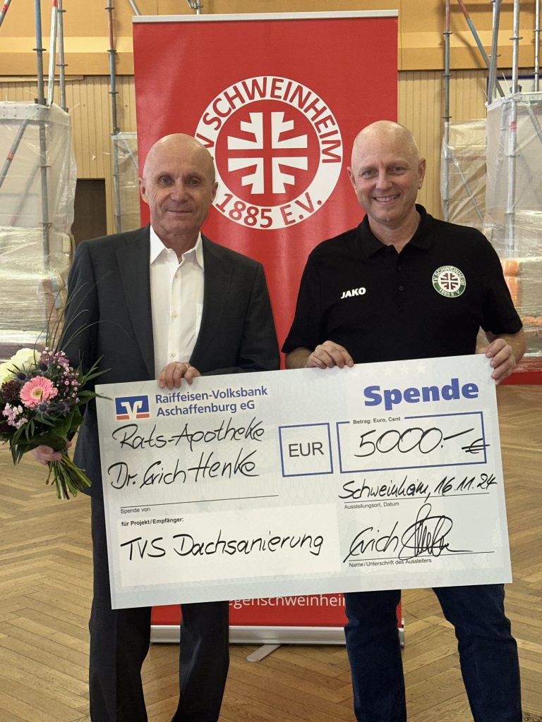 Die Schweinheimer Ratsapotheke von Dr. Erich Henke leistet einen wichtigen Beitrag für die Zukunft des Turnvereins Schweinheim 1885 e.V. Mit der bisher größten Einzelspende für die dringend notwendige Dachsanierung der Turnhalle zeigt Dr. Henke seine anhaltende Verbundenheit mit dem Verein und dem Stadtteil Schweinheim. Dr. Henke, der selbst auf eine lange Vereinsgeschichte zurückblicken kann, war in der Vergangenheit nicht nur Abteilungsleiter für Handball und Leichtathletik, sondern auch Vorstandsmitglied. „Diese Halle ist ein Herzstück in Schweinheim“, betonte er bei der Spendenübergabe. „Sie ist für sportliche und kulturelle Zwecke unverzichtbar.“ Mit seiner Unterstützung wolle er dazu beitragen, dass die Halle auch in Zukunft ein zentraler Treffpunkt bleibe.