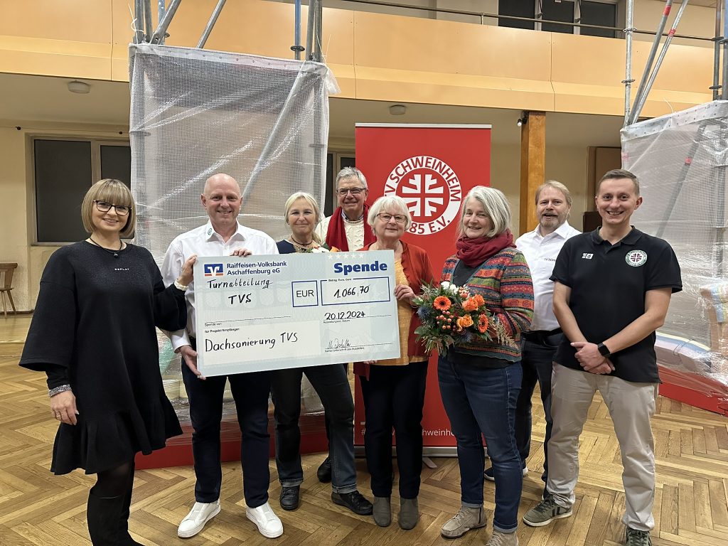 Der Vorstand des TV Schweinheim 1885 e.V. bedankt sich herzlich bei der Turnabteilung des TVS. Das war die zweite Spendenaktion einer Abteilung des TV Schweinheim. Durch diese Aktion kamen 1.066,70 € als Spende für das Hallendach zusammen.