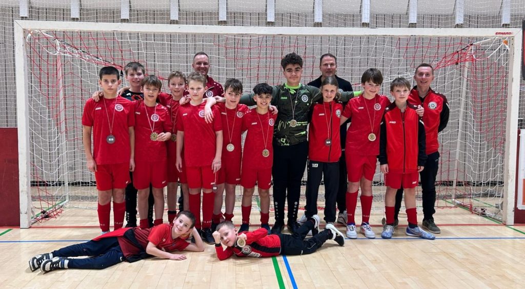 Ende hier 5:0 für den Gegner. Im kleinen Finale war das Glück nicht mehr auf unserer Seite. In einem einseitigen Spiel wollte der Ball einfach nicht in das gegnerische Tor und so kam es wie es kommen musste. Der Gegner kam mit einer Aktion und etwas Glück vor unser Tor und behielt hier die Nerven. Trotz aller Bemühungen und unendlichen Willen konnten unsere Jungs den Rückstand nicht mehr Wett machen und so verloren wir auch leider das kleine Finale mit 1:0. Nicht desto trotz sind wir sehr stolz über den 4. Platz und die Entwicklung unserer Mannschaft. Jetzt heißt es erstmal durchatmen und den Fokus auf das letzte Hallenturnier richten.