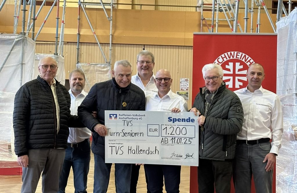 Mit großem Engagement haben die Turnsenioren des TV Schweinheim ein Dreikönigsessen auf Spendenbasis organisiert. Dabei kamen 1.200 Euro für die Dachsanierung zusammen. Der Sprecher der Turnsenioren Herbert Roth: „Das ist für uns selbstverständlich. Bei uns hilft jeder jedem und die Halle ist wichtig für unseren Sport und unsere Gemeinschaft. Das Dreikönigsessen war bereits die dritte Spendenaktion einer Abteilung des TV Schweinheim. Bei Kaffee und 17 selbstgebackene Kuchen ließen sich rund 200 Gäste verwöhnen. Am späten Nachmittag gab es zudem noch 160 belegten Brötchen mit Wiener Würstchen