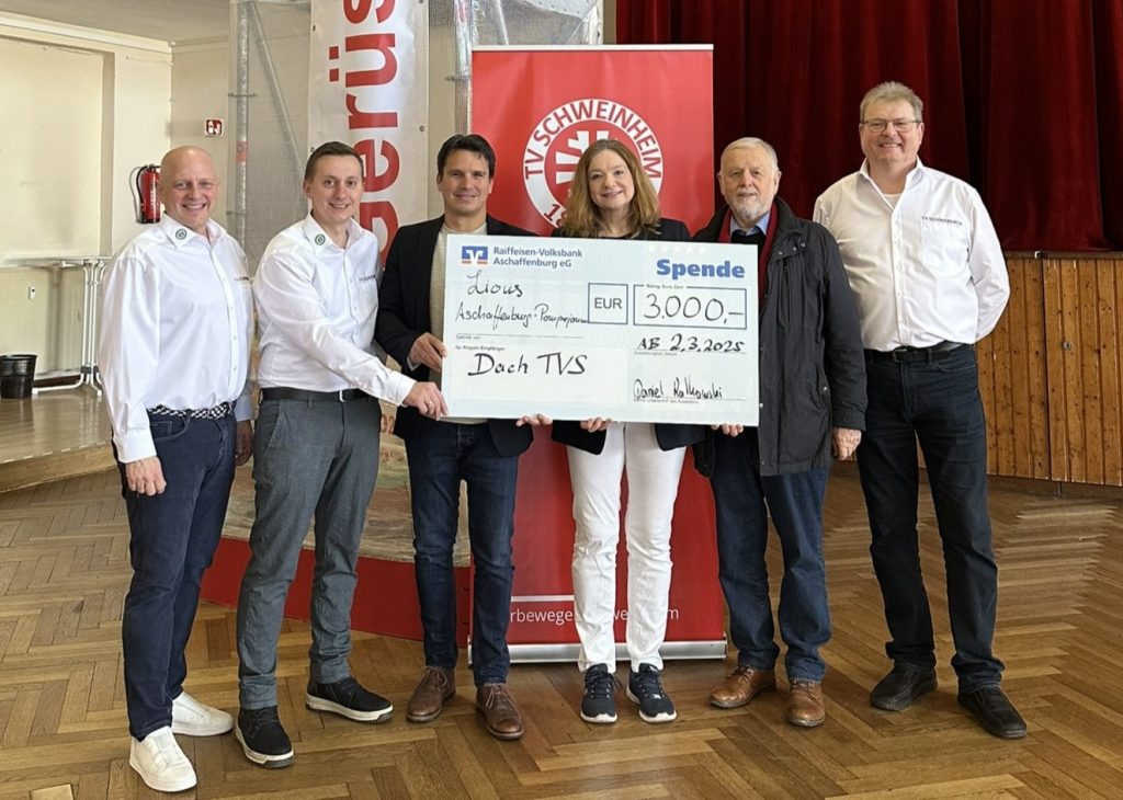 Eric Leiderer, Vorstand des TV Schweinheim, ist dankbar: „Der Lions Club Aschaffenburg Pompejanum ist seit Jahren für sein vorbildliches soziales Engagement bekannt. Wir sind sehr dankbar für diese großzügige Unterstützung – sie bringt uns unserem Ziel ein großes Stück näher. Ein herzliches Dankeschön an alle Spenderinnen und Spender, die zum Erhalt der Turnhalle beitragen. Jede Unterstützung hilft, dieses wichtige Projekt zu realisieren. Gemeinsam für den Verein! Ein besonderer Dank geht auch an die Druckerei Tübel GmbH, die unsere Arbeit durch Anzeigenwerbung unterstützt.