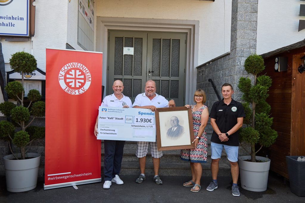 Mit einer Spende in Höhe von 1.930 Euro unterstützt Kalli Staudt die Sanierung des Dachs der TV Schweinheim Turnhalle – und setzt damit ein ganz besonderes Zeichen: Der Betrag steht symbolisch für das Baujahr der Halle, an deren Errichtung sein Urgroßvater Josef Staudt als Bauunternehmer maßgeblich beteiligt war. Als erster Vorsitzender des TVS stellte er nicht nur Baumaterial, sondern packte auch selbst mit an. Kalli Staudt übergab zusätzlich ein Originalfoto seines Urgroßvaters für die Halle und erinnert sich mit großer Verbundenheit an unzählige Momente aus Kindheit und Gegenwart: „Die Halle war und ist für meine Familie immer ein Mittelpunkt des Lebens in Schweinheim.“