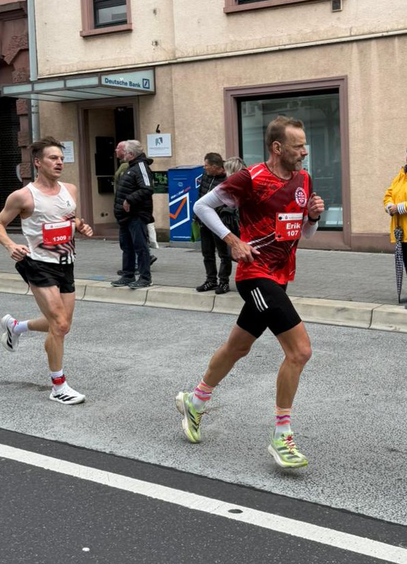 Kaum war der Regen vorbei, legten unsere Läuferinnen und Läufer richtig los. Viele erzielten persönliche Bestzeiten oder konnten ihre Ziele deutlich übertreffen. Besonders glänzte Erik Herold, der in 1:25:17 Stunden nicht nur seine Altersklasse M50 gewann, sondern für den wohl legendärsten Moment des Rennens sorgte:
