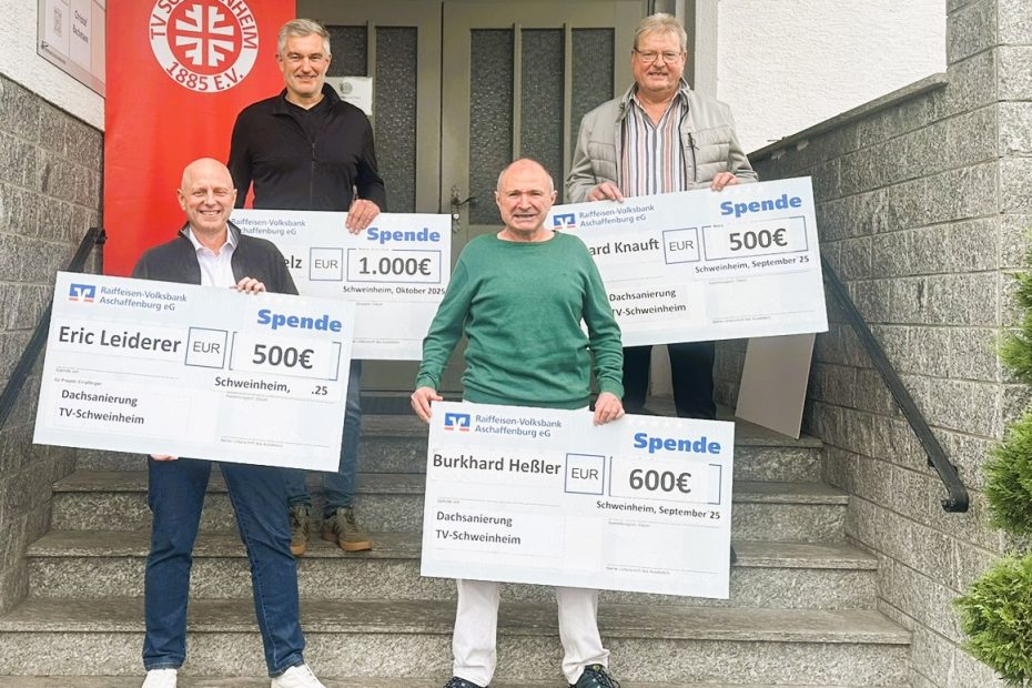 Der TV Schweinheim darf sich über eine besondere Geste der Solidarität freuen: Vier engagierte Vereinsmitglieder haben gemeinsam 2.600 Euro für die Sanierung der „Alten Turnhalle“… Mehr lesen »2.600 Euro Spenden von aktiven Vereinsmitgliedern