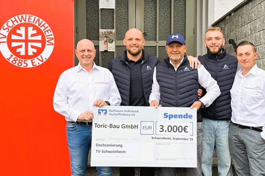 Die Sanierung der alten Turnhalle des TV Schweinheim erfährt weiterhin wertvolle Unterstützung aus der Region. Die Firma Toric Bau hat ihre bereits im Mai geleistete… Mehr lesen »Toric Bau erhöht Spende auf 3.000 Euro