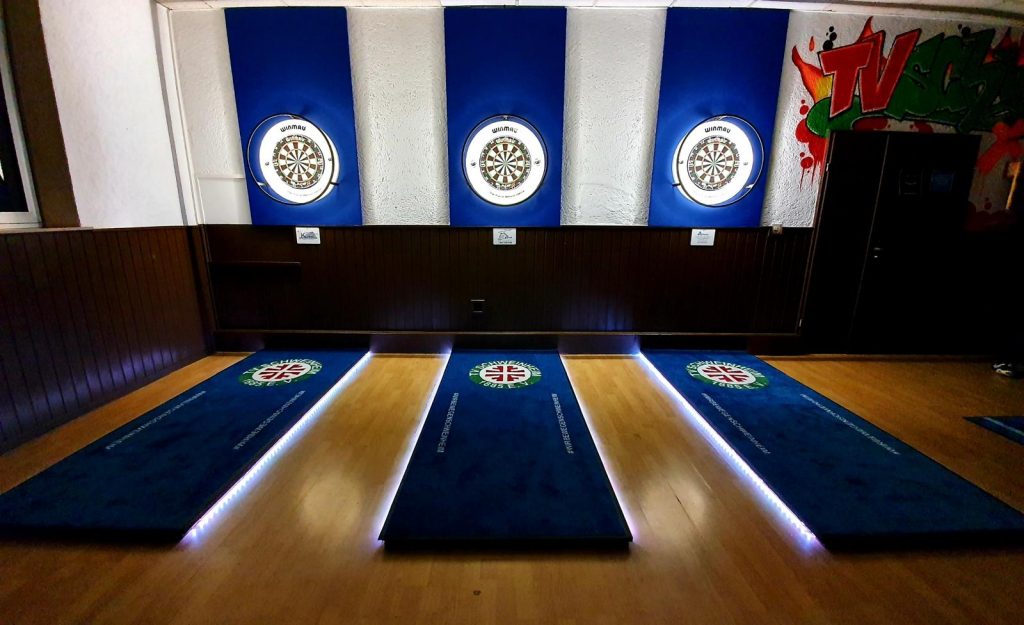 Unsere Dart-Abteilung wurde 2019 gegründet und zählt mittlerweile ca. 35 Mitglieder. Seit 2020 nimmt das Team aktiv am Spielbetrieb teil. Im Obergeschoss der alten Turnhalle wurden mehrere Dart-Spielfelder sowie eine kleine Bar eingerichtet.